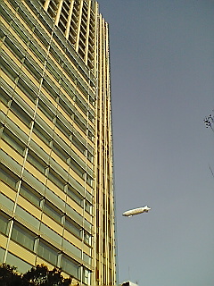 駅に向かって歩き始めると、飛行船が浮かんでいたので、![]()